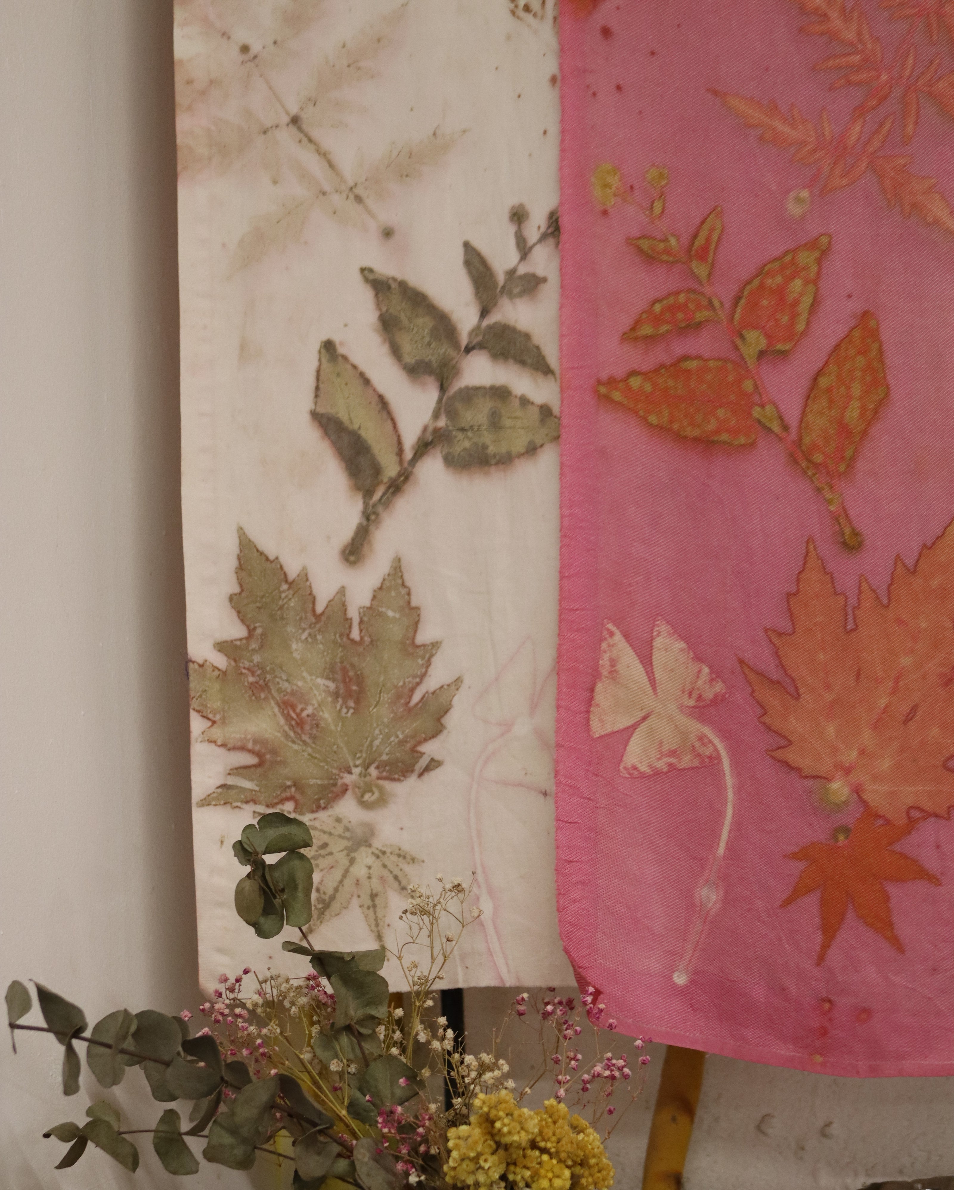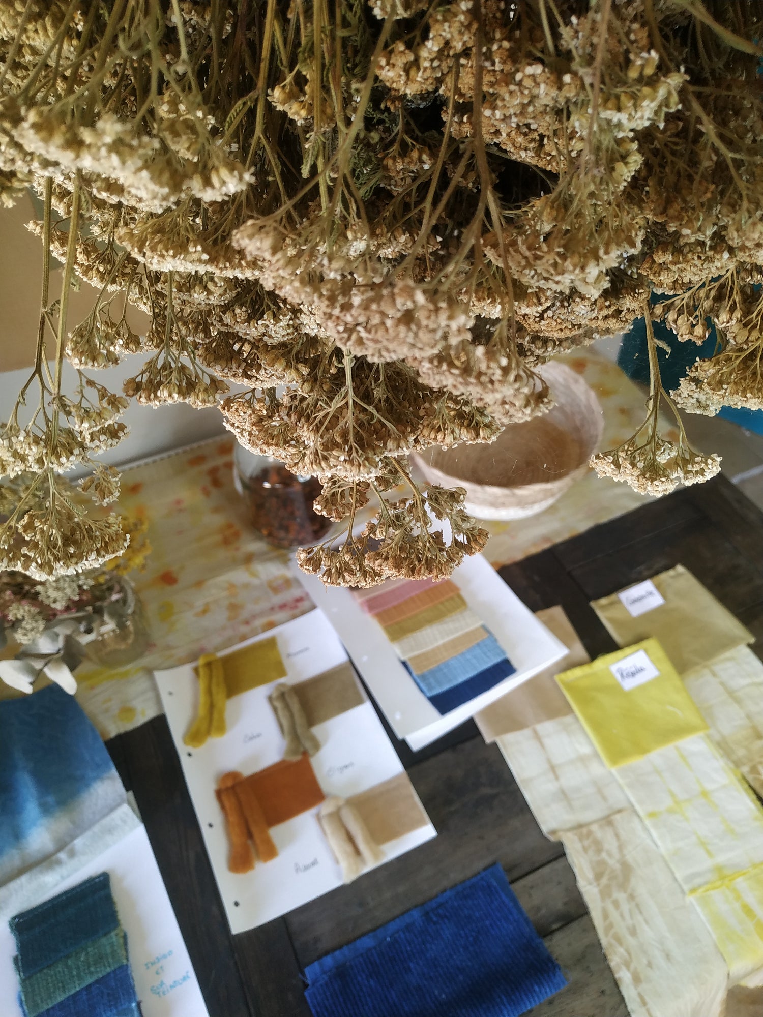 Pour vous faire une meilleure idée des possibilités qu’offrent les teintures naturelles, vous m'envoyez un échantillon de votre tissu (20x20) pour chaque couleur choisie (voir avec moi le mon catalogue de couleurs).